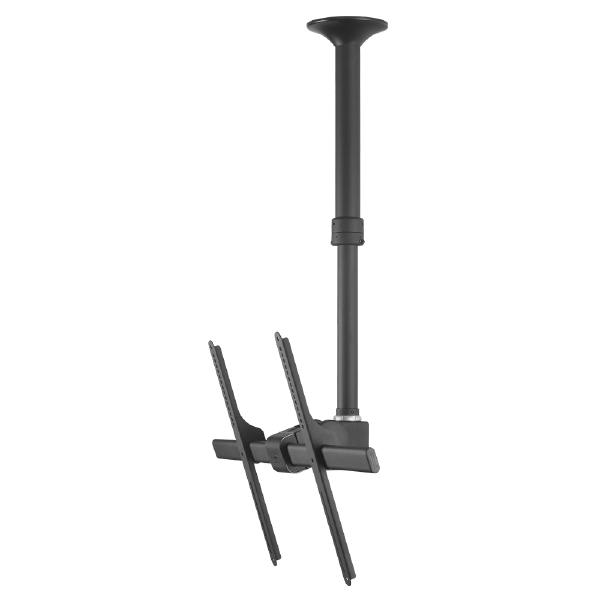 Max load 65kg,Supports displays with universal mounting hole configurations;From 200mm to 800mm wideFrom 200mm to 500mm high,Display can be installed in either landscape or portrait orientation,Telescopic pole length can be adjusted from 550mm (41.3") up to 900mm (74.8"),Can be upgraded at any time to carry additional display (via Telehook TH-3070-CT-B2B accessory, sold separately),Advanced cable management for a professional finish,Allen Key storage to easy access,Additional plastic cover supplied for false ceilings where required,Shipped with complete installation guide and all mounting hardware included,Material: Steel and Aluminium,Colour: Black,Warranty: 10 years