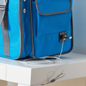 Charges 6 devices up to 15.6" screen size - laptops, tablets and Chromebooks plus other chargeable equipment such as headphones, POS devices, barcode scanners, label printers, robotics, VR headsets,Device adaptors plug into supplied 6-way power strip, located in separate front compartment,Simultaneous charging of all 6 devices to ensure devices are fully charged as fast as possible,IEC socket with 1.8m / 6 ft power cord designed to snap out if pulled away from the wall to prevent damage,Cables and AC adaptors are secured in front compartment with separate lock for safety and to prevent cables being removed from the main device compartment,Flexible cable management pockets in front power compartment easily store AC adaptors and excess cable to keep everything organised,Perfect for use by educators, trainers, contractors, photographers, musicians, instructors in any industry that requires portable charging and storage for laptops, tablets, tools, headphones, robotic,Constructed to the same specification as rolling tool cases, from durable 600D ballistic weave material with high-rigidity plastic internal core, YKK zippers, heavy duty nylon strapping, nickel plate,Robust wheels on telescopic transport cart make travelling across indoor and outdoor surfaces easier, reducing a lot of the bumps along the way and keeping equipment safe inside the case,Manufactured in flame retardant internal and external fabric.,Device Compartment Size - W400 x D320 x T30 mm / 15.7" x 12.6" x 1.2"